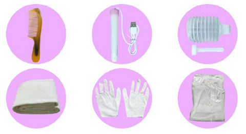Accessoires binnen kartonnen doos: Deken, Doek, pruik, kam, vagina schoner, handschoen, instructie, USB-verwarmer, 1pc per elk.